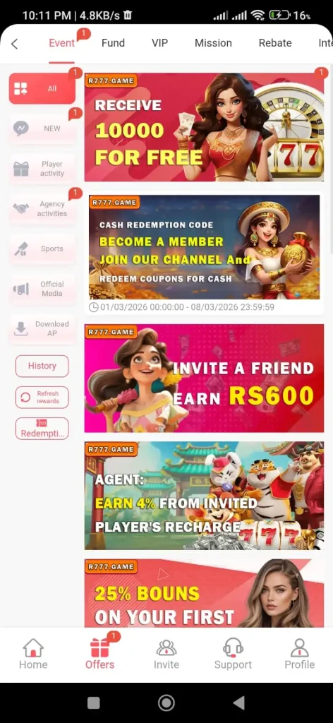 The R777 game app offers many options to make money. Players can earn money by winning games and participating in competitions. The app gives login rewards and bonuses for logging in daily. It also offers special events and challenging games where players can win extra prizes. The slot games provide rewards through spins and other special gifts.